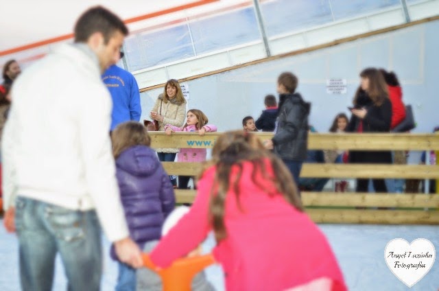 Entretanto, fomos almoçar e quando regressámos à Vila Natal o recinto já estava a transbordar de gente. Ainda bem que chegámos de manhã porque à tarde já era complicado usufruir de certos espaços. Mas por lá ficámos até ao cair da noite. Adorei descer a pista de gelo sentada num pneu (espetacular! pena não ter nenhuma foto porque fomos os três e não ficou ninguém para registar a acrobacia!) mas não posso dizer o mesmo da patinagem. Prometi que ia com ela. Estava desejosa de experimentar mas só consegui largar a cerca para a fotografia ah ah ah!