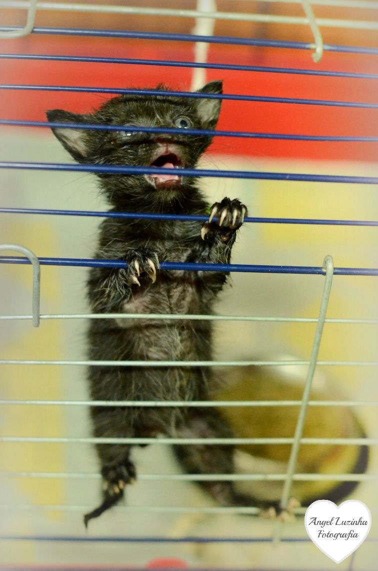 E este? É a coisa mais querida! Parece um elien bebé! O pobrezinho foi abandonado com os seus irmãos junto a um portão velho. Felizmente a sorte bateu-lhe à porta ;-)