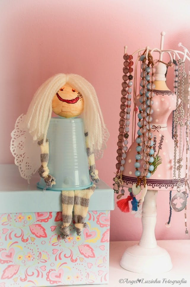 O Anjo fofinho que fez na escola está agora comodamente instalado no País dos Brinquedos (leia-se quarto!)